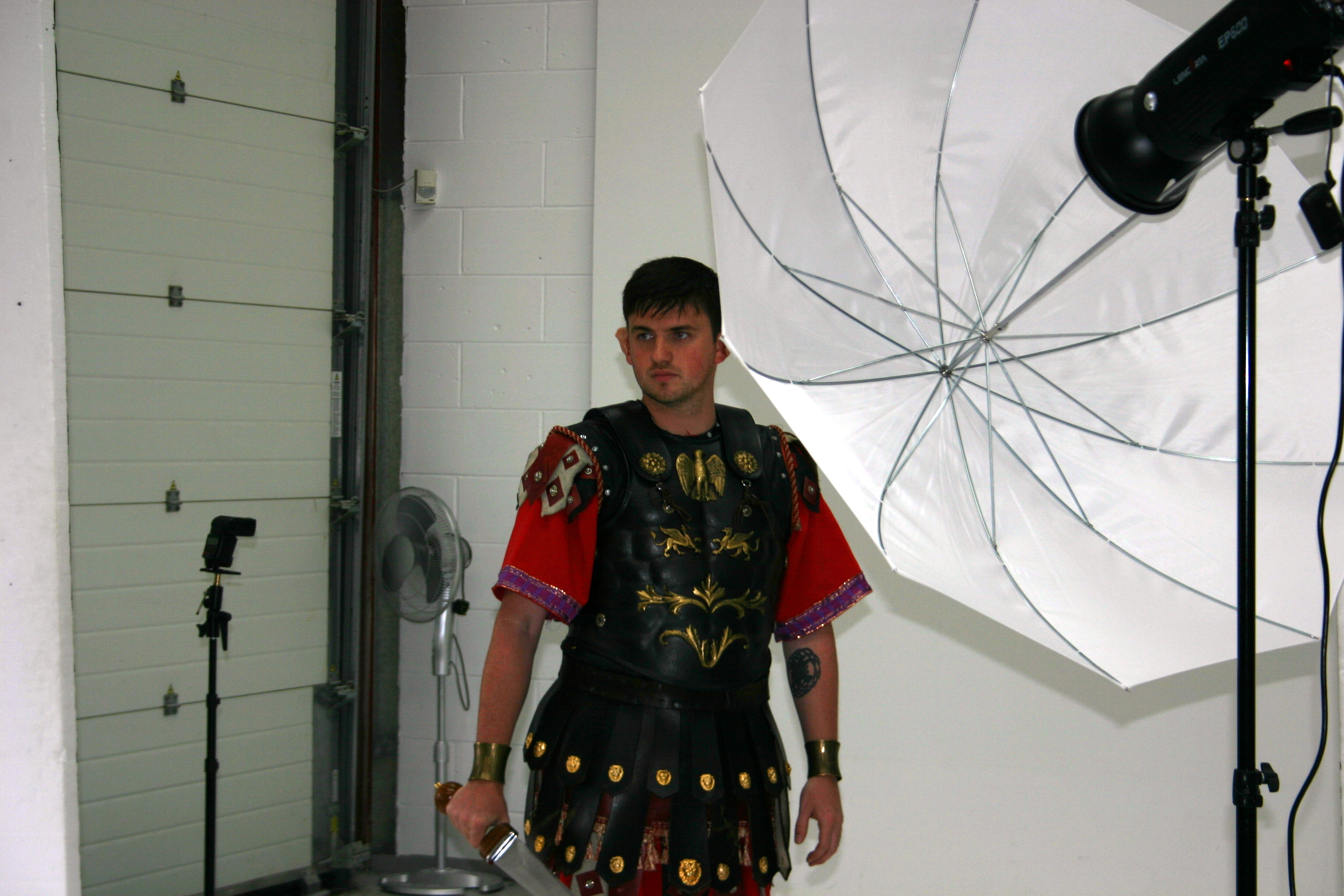 While Jess fussed around with costume and make up, creating some wonderfully realistic wounds, the photographer worked on the lighting. This took even longer than it did for the previous shoot as he needed to get a completely white background without shadows. This was not as easy as you might think and probably needed at least one more light to properly drench the area but after a lot of faffing he finally achieved it.